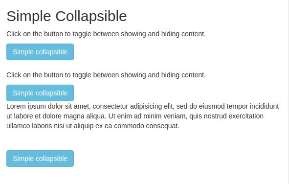 <button type=\"button\" class=\"btn btn-info\" data-toggle=\"collapse\" data-target=\"#demo1\">Simple collapsible</button>