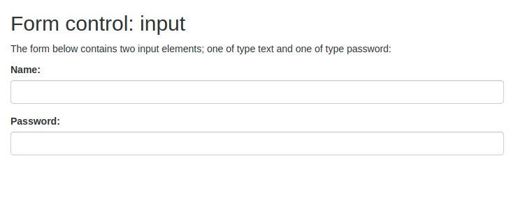 <p>The form below contains two input elements; one of type text and one of type password:</p>