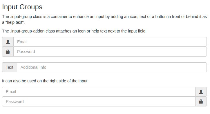 <p>The .input-group class is a container to enhance an input by adding an icon, text or a button in front or behind it as a \"help text\".</p>